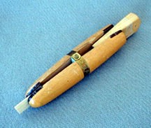 The Ring Clamp allows you to work on small parts while holding an object that is comfortable in your hand. A wooden wedge holds the clamp together as the leather covered jaws hold the work. One end is straight and the other is rounded. This easy to use tool eliminates cramps in fingers when sanding or filing small parts of wood, metal or plastic.
