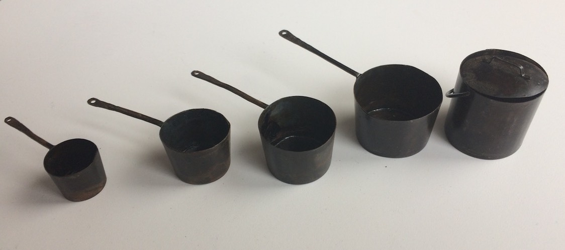 Scoop $18.00 Candle Stick $25.00 Stock Pot $18.00 Stock Pot with Cover $23.00 Watering Can $40 Candle Mold $40.00 Long Handle Fry Pan $18.00 Toaster $18.00 Skimmer $18.00 Poker $15.00 Ash Rake $15.00 Ash Shovel $18.00 Small Fry Pan $18.00 Oblong Bucket $18.00 Sauce Pan $18.00 Tin Pitcher $40.00
