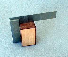 2" x 3" gluing jig made of hard plywood with a 1/8" thick aluminum fence on two sides. Fence is 1/2"" high for easy clamping. It has a galvanized steel bottom, and with 4 magnets included, $20.00