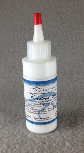 Roo for Wood is a clear white glue that has many properties similar to yellow wood glue without the color. It dries very quickly and is rigid without being brittle. 2 oz. bottle.