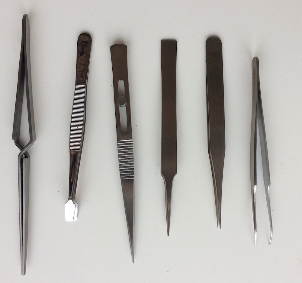 We carry straight, curved, blunt, pointed, self-locking and slide locking tweezers. The stamp forceps have wide, flat jaws. E-mail us for your individual tweezer needs.